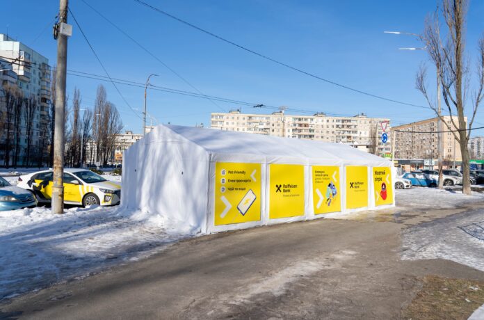Um die Einwohner von Kiew während längerer Ausfälle der Heizung oder der Strom- und Wasserversorgung zu unterstützen, hat die Raiffeisen Bank Ukraine in der Hauptstadt nun drei sogenannte Resilienzpunkte („resilience points“) eingerichtet. Dabei handelt es sich um beheizte Notfallzelte mit warmen Getränken und Stromversorgung für Zeiten längerer Ausfälle in den eigenen vier Wänden.